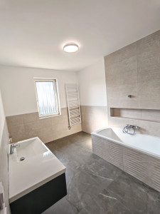 A három tágas, napfényben fürdő szoba kellemes, világos életteret biztosít, míg a két fürdőszoba és a különálló toalett maximális kényelmet nyújt a mindennapok során. Az ingatlan alsó szintjén egy sokoldalúan használható helyiség is található, amely ideális lehet tárolásra vagy akár egyéni tevékenységek céljára is.